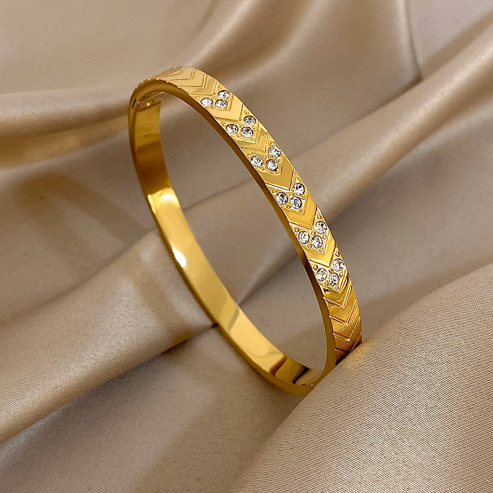 Bracelet manchette torsadé en Zircon incrusté brillant plaqué or 18 carats pour femmes, mode géométrique, étanche, breloques empilables, bijoux cadeaux